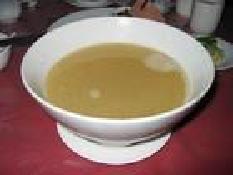 精制清汤(上汤,顶汤,单吊汤,双吊汤):取普通清汤用纱布过滤。取鸡肉斩成肉茸,放葱姜酒及清水浸泡片刻。把鸡肉茸放入清汤,旺火加热搅拌。待汤将沸时改用小火,不能让汤翻滚。汤中浑浊悬浮物被鸡茸吸附后,除尽鸡茸。这一精制过程叫“吊汤”。精制过2次的清汤叫“双吊汤”。清汤是制汤中最难制的汤,也是质量最好的汤。清澈鲜香。常用于鱼翅,海参或高档清鲜汤肴。