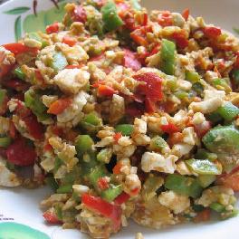 鲜鸡蛋2个,咸鸭蛋1个,红椒青椒各1根,蒜,姜少许
