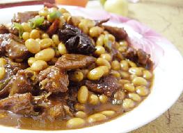 步骤3:大火烧开后放黄豆,调适量盐,大火烧开后转小火慢炖至黄豆酥烂即可。起锅时加点鸡精和葱花就可以了。