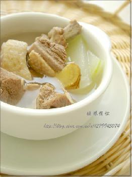 3.锅中炖烂,再放入切好的冬瓜片,烧滚闷一会儿,放盐鸡精即可。
