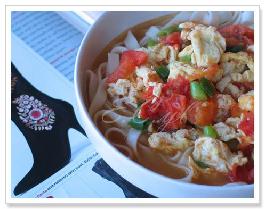 西红柿鸡蛋面条曾是老公的拿手菜。记得好多年前做西红柿鸡蛋面条,我们是用的方便面。他把做法传给我以后,不知不觉中,他的做饭功能退化,现在只能由我来发扬光大了。因为他吃了顿烤鸭,鸭架子就炖了汤。一般我做西红柿鸡蛋面条都是放鸡汤或肉骨头汤的,用鸭汤还是第一次。老公反应不错。鸭汤闻上去有种特别的香味,给做了几百回的西红柿鸡蛋面条增了不少色。
