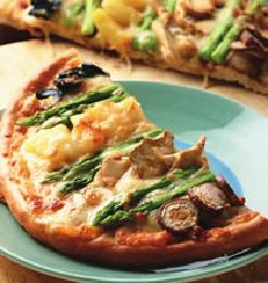 3.撒上2/3份量的起司絲,再擺上作法1的鳳梨片、蘑菇片和其餘材料,最後再撒上其餘1/3份量的起司絲,放入相同火候的烤箱,烤約2分鐘即可。