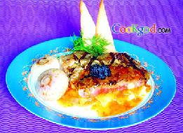 西冷牛排(又叫沙朗牛排,口感韧度强)100克,生菜10克,瓶装三文鱼籽酱10克,洋葱头2个。调料盐10克,味精5克,胡椒粉5克,红油15克,黄油10克。