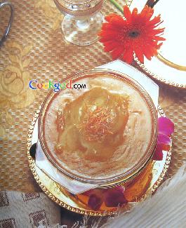 2、锅内加上汤,调好口味,勾芡,淋葱油,盛浇在碗内的鱼翅上,撒上火腿丝,盖上盖,放在金器架上,点燃酒精上桌即可。