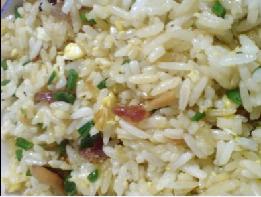白米饭2碗,腊肠2根,火腿1根,香葱2根,鸡蛋1只,酱油约2匙