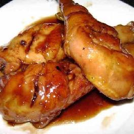 材料:鸡腿(3只),配料:姜(5片),蒜头(8瓣),调料:食用油+麻油的混合物:酱油:甜糯米酒=1:2:3