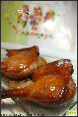 这个我以前做过一次,但是因为直接把鸭腿放在锡纸上烤,导致鸭腿破相了,所以这次 我垫了苹果片烤,这样烤出来的鸭腿灰常漂亮哦!当然,苹果片可以用土豆片或者其它代替.说实话,垫了萍果片的鸭腿没有如我期待的吃出很明显的苹果香味,反倒是鸭腿 烤出来的油被苹果片吸收了,苹果片变得软软糯糯非常好吃.当然了,如果你减肥ing, 那么苹果片不要吃啊.烤的时候小哲跟他爸吸着鼻子一起说:"好香啊!"小哲三番五次来问我好了没烤好 后装盘拍照,小哲在旁边转悠,时不时伸出小爪想要偷袭.等我拍好他立马毫不客气夺 过一只就啃