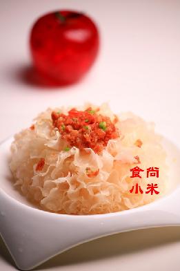 火腿,银耳,香葱,红辣椒,调料:盐,高汤,姜片,香油