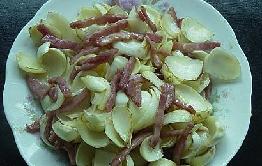 火腿丝和葱、姜末一起下锅爆香,下百合加盐、糖略炒即可。