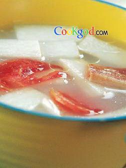 汤鲜味美,颜色鲜明。冬瓜要切成厚片,这样熟透后口感更好。