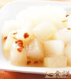 1.冬瓜去皮、去籽,切小块,再放入沸水中汆烫去青涩味后,立即捞起备用。