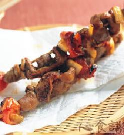 5.将作法4的酱淋在作法3的肉串上,放进以预热3分钟180度的烤箱烤约10分钟即可。