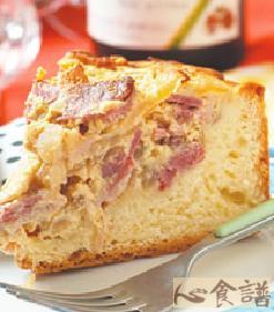 面煳:1小匙,温牛奶150㏄,砂糖1小匙,高筋面粉375公克,蛋1个,融化的奶油50公克,内馅:750公克,奶油65公克,奶油乳酪80公克,无糖鲜奶油50㏄,盐1小匙,蛋3个,培根125公克