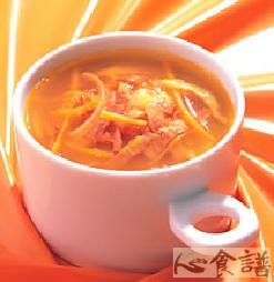 2.)培根先干煎过,再倒入高汤、蔬菜及所有调味料,先用大火烧开,再改小火煮15分钟即可。