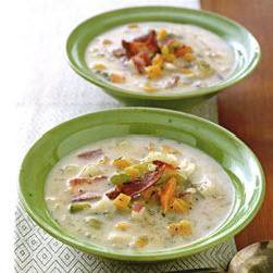 橄榄油2茶匙,大洋葱1个,切碎,西洋芹菜茎2根,切块,干百里香11/4茶匙,压碎,中等大小的胡萝卜2根,削皮后切块,大番薯(甘薯)1个,削皮后切块,中等粗细的防风草根1根,削皮后切块,大马铃薯1个,削皮后切块,青甜椒1/2个,去籽后切块,低钠零脂肪鸡汤或蔬菜高汤1罐(411克),盐1/2茶匙,低脂(2%)牛奶400毫升,意大利陈年果醋(balsamicvinegar)1汤匙,煎熟的火鸡培根(烟肉)3片,切块