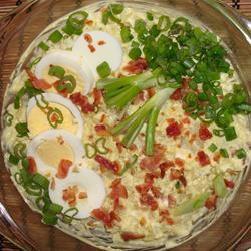 这道简便沙拉的特点是清脆的生菜配培根、煮鸡蛋、碎胡萝卜丁和西红柿片,最后淋点油和醋。