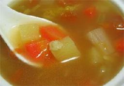 材料:,卷心菜80克,胡萝卜30克,洋葱50克,番茄1个,培根3片,西芹1根,肉桂少许,调味料:,高汤500毫升,咖喱粉1大匙,盐少许,胡椒粉少许,橄榄油少许,药材:,五味子15克