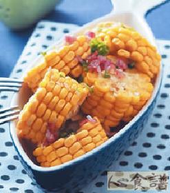 1.甜玉米洗净、切段,撒上少许盐,再加入奶油拌匀,置于烤盘上,并盖上烤盘盖后,放入已预热的烤箱中,用200℃旋风功能,烤约15分钟。