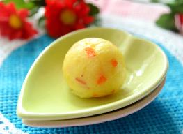 步骤3:胡萝卜,培根,奶酪切丁,然后再加盐,黑胡椒粉调味,搅拌均匀。
