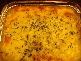 3.把煮好的饭放在烤皿中,铺上马自拉起司,放进烤箱烤约10分钟即可 (8分钟时撒上Parsley.再推回去烤)。