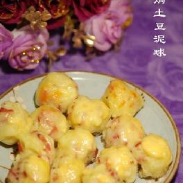 土豆一定要压成泥,盐尽量少放,因为培根已经有味道了!