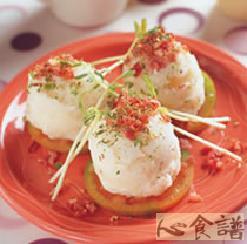 4.将培根碎末炒香,与巴西里一起撒在作法3的薯泥球上,放入烤箱以180℃烤约3分钟即可。
