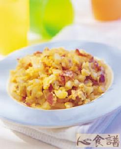 (3)锅子预热后加入少许油,倒入作法(2)的材料,炒至蛋液熟后,即可盛起放入盘中食用。