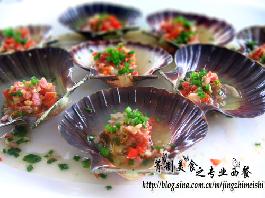 炒香培根碎,沥去油分备用。然后热锅爆香蒜茸、加入红椒粒、盐、绍酒、麻油、胡椒粉调成汁,把培根碎均匀撒在扇贝上,淋上花生油,下锅旺火蒸5分钟至熟,撒上葱花即可。