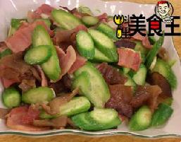 材料:小黄瓜200克,木耳100克,培根8片,蒜头3瓣,