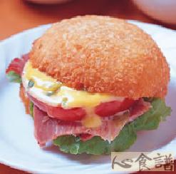 3.将圆型炸面包切开,抹上软化奶油后,将作法2的馅料夹入,攦上黑胡椒、巴西里即可。
