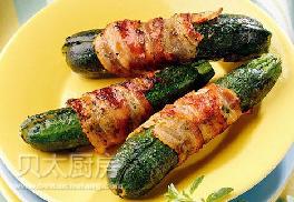 小西葫芦12根,橄榄油2汤匙(30ml),法香4汤匙(60g,剁碎),奥里根努4汤匙(60g,剁碎),培根24片,盐1/2茶匙(3g),黑胡椒碎1/3茶匙(2g)
