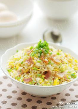 鸡蛋 培根 米饭 葱花 1勺料酒,2勺耗油
