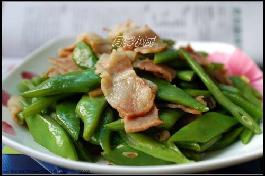 某人说我整个一菜场白痴,因为菜场里总有我叫不出名字的菜,永远是某人买菜比我便 宜质量又好,BS,严重BS菜场那些卖菜的,顺便连某人一起BS 下! 今天这个蔬菜,长的像四季豆,比四季豆要大要扁,我还以为会有什么新鲜名字,问了下 老板娘,就叫大扁豆. 家里有上次麦德龙买的大包装培根,小哲反正已经死活不肯当早饭吃了,那得想另外法 子加油吃啊.切片跟大扁豆一起炒,味道还真不错!