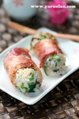 1、煮饭用鸡汤或高汤代替清水,煮出来的米饭会更有味道 2、我拌饭用的日式袋装调配好的海苔碎,也可以用海苔碎和炒熟的芝麻自己调配 3、煎饭团的时候,如果是用不粘锅,那么不放油也可以了,煎的时候培根最后的接口处贴着锅煎,这样就可粘住不散开啦,煎好一面好再翻动