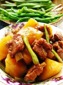 2.要等到排骨焖得差不多熟了的时候再加豆角和土豆(尤其是土豆),要不会烂在锅里成糊糊了哦!