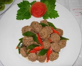 “健康的菜妈妈的爱”! 记得在我上小学时,妈妈就领我参加过上海市家庭厨艺比赛。因此,我受妈妈和参赛者的耳濡目染,厨艺受益非浅!渐渐我喜欢上烹饪美味佳肴。 5月4日是我妈妈的生日,5月11日又是母亲节,我根据妈妈教我的菊花鸭珍花刀,用在火锅原料牛肉丸上,创新了一道“彩椒牛肉丸”来感恩妈妈的爱!“吃过的亲朋好友都说棒!!我妈妈更是笑得合不笼嘴哈!哈!哈! 感恩妈妈的爱同时,我们全国人民都与四川地震灾区同胞们紧紧相连,众志成城,抗震救灾! “彩椒牛肉丸”特点:鲜香味美、型色美观。