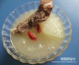 08年的冬天,俺自己一个人度过。寒冷的冬日,最幸福的事情就是有一碗暖汤,从口喝下,暖流也顺着肠胃慢慢流遍身体~ 聪明如我,花了100多大洋,买了个电动紫砂锅,一早将猪骨飞水后,放入砂锅里,再丢进去葱姜和八角,插上电,就好~!多简单啊~!晚上下班,俺风尘仆仆滴扑回俺的小窝,冲进厨房,将冬瓜去皮洗洗切切,放入事先炖好的汤中,开大火,加盐,短短十分钟,雪白的冬瓜猪骨汤出锅喽~。 外面的风又大了,呼呼地吹着,连房门都跟着砰砰作响。屋外的风,屋内的我,喝着汤,足以暖心暖胃~