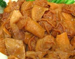 4.把调料(绍酒150毫升、高汤200毫升、盐3克)混合拌匀,放入猪肚条浸泡4个小时左右,使猪肚入味。