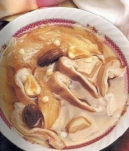 (3)适量水煮滚,放下霸王花、猪肚、果皮、蜜枣、南北杏大火煮滚,再转慢火煮3小时,下盐调味。
