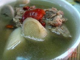 猪脊骨,牛蒡1根,蜜枣2粒,南杏适量,盐适量