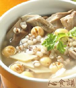 猪肚500公克,姜片20公克,药材:50公克,莲子30公克,芡实40公克,淮山30公克,枸杞10公克,盐1茶匙,鸡精粉1茶匙,米酒2大匙