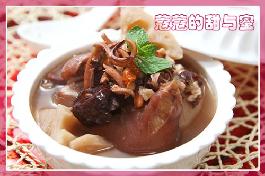 小号猪前蹄1只,小章鱼干4只,红豆1把,薏仁米1把,芡实1把,红枣6枚,枸杞1小把,火腿四片,姜4片,葱1节,八角2颗,黄酒4汤匙,盐适量