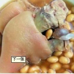 2.干净猪蹄加冷水大火烧开后,换中火,炖一小时到一个半小时,中间放泡好的黄豆。