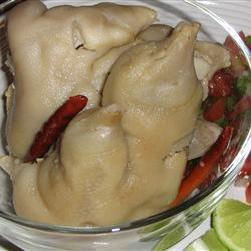 猪蹄6只,新鲜红辣椒2个,盐2汤匙,酒醋450毫升