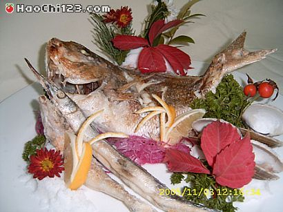 加吉鱼1000克、菠菜200克。2、炒锅内放入花生油,烧至八九成熟时,手提鱼尾入油冲炸,一触即捞出,放入烤盘内。
