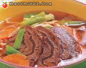 5.牛肉煮熟后置于室内阴干,再以上等香油炸至肉块呈红褐色出锅。6.曹县烧牛肉防腐性能好,可贮放较长时间而不会变质。