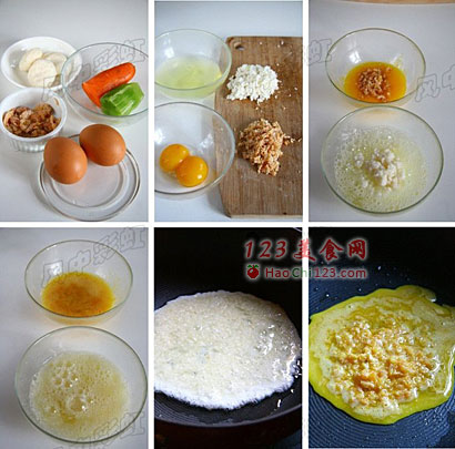 3、当然,功夫不能白下,味道一定要好才对得起这番折腾。以前是绝想不到煎鸡蛋还要用到荸荠的,但是讲究折腾过后发现,加了荸荠煎出的鸡蛋清,口感棒极了。而且绝不像那茄鲞做出来让刘姥姥尝不出茄子味儿来。这金银蛋做好后,仍是蛋香四溢。