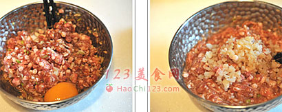 3、在手上摔打丸子的时候,建议手上沾一点凉水,不容易沾肉馅,很好用。
