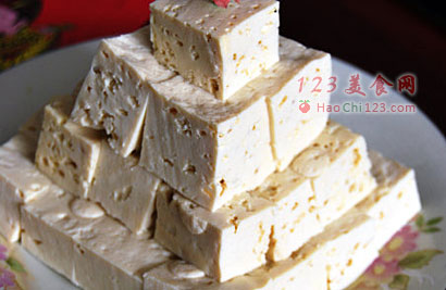 3、取出蒸好的豆腐凉凉,同时撒上适量盐,腌制半日后即可切成小块,用醋、香油,调拌食用。