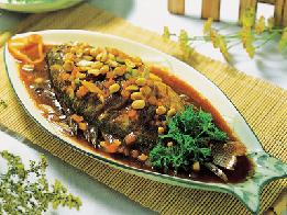 3鱼快熟时,投入红椒粒、蒜子粒、蒜苗,加入盐、味精、老抽王、胡椒粉,撒上花生米,淋上花椒油,入碟即成。